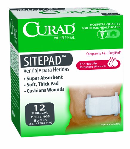 -. Feature : CURAD® Sterile Sitepads are designed for larger wounds or increased draining wounds / Helps to provide extra strength and absorbency compared to traditional gauze items / Helps reduce the number of changes and provides comfort / Each box contains 12 sterile site pads, 5" x 9" / Latex-free