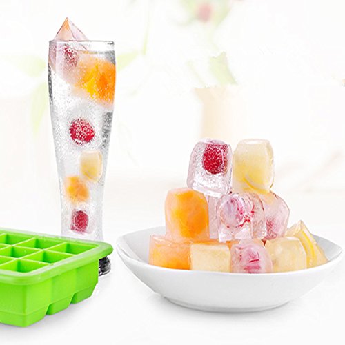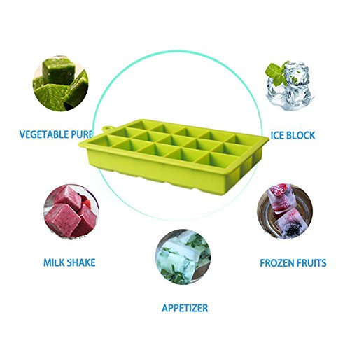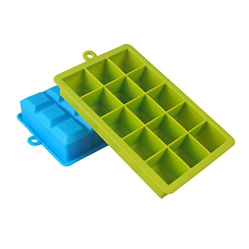 Daixers Silicone Ice Cube Tray Molds,15-Cube Trays,Pack of 2 (Green & Blue)