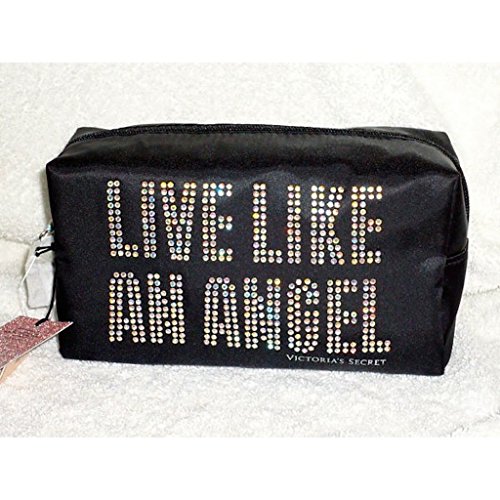 Victoria's Secret Fashion Show London 2014 Black Rhinestone Bling Live Like an Angel Zip up Makeup Cosmetics Bag Tote by Victoria's Secret