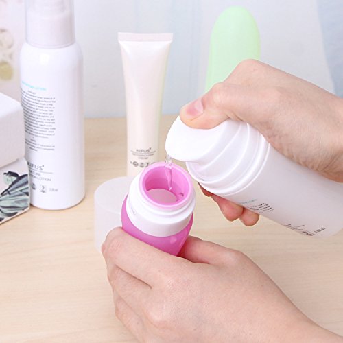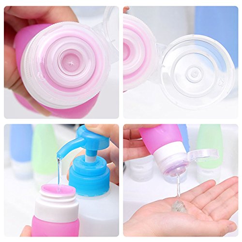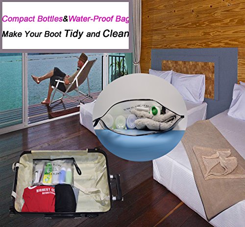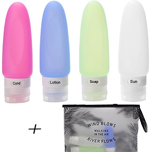 - MoreTeam Advantages: Three 3oz soft silicone bottles with 1 FREE 3oz bottle can hold lotion, shampoo, body wash products, cleanser, and a large water-proof bag(11.8x8.86x1.57 inches) that you can put inside your washcloth, brushes, lotion, shampoo, etc..Offering one-stop service for your trip.