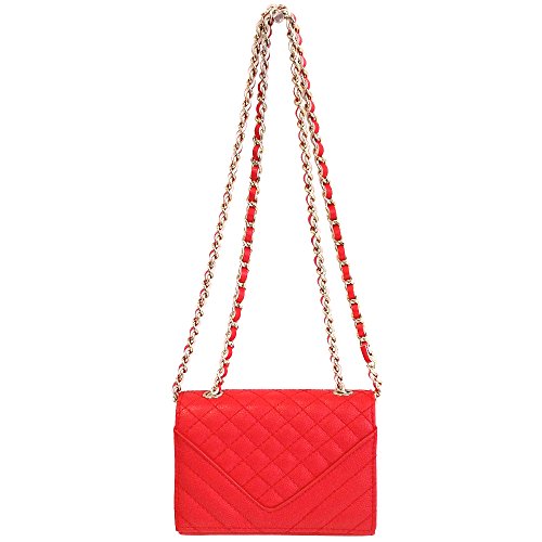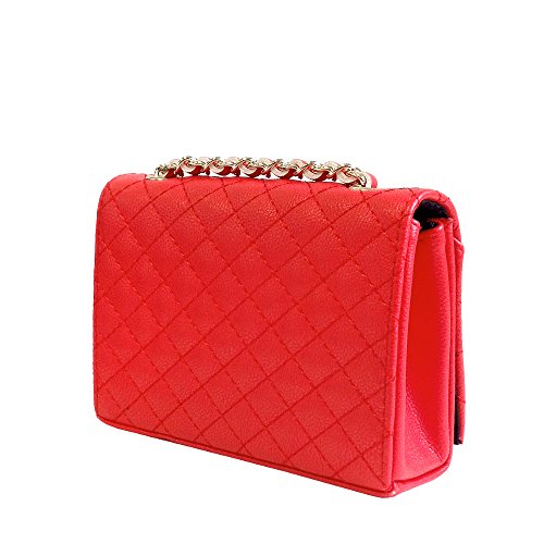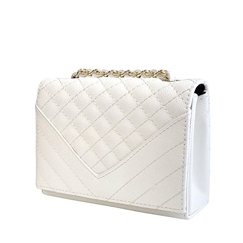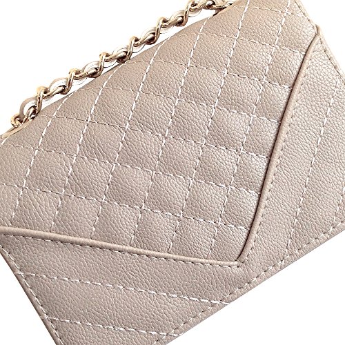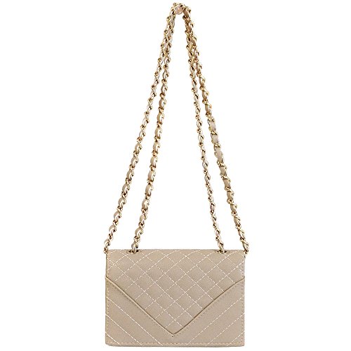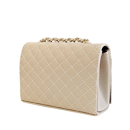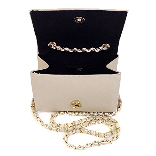 -. Brand : JNB -. Department : womens -. Feature : Could be worn as cross-body or shoulder bag by adjusting the chain strap. / Color Gold Metallic Ornament Finish / Twill Fabric Lining / 10" Shoulder drop, 20" Cross-body drop / Chain not detachable. -. ProductGroup : Shoes -. ProductTypeName : HANDBAG -. Title : JNB Women's Quilted Mini Clutch