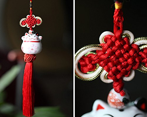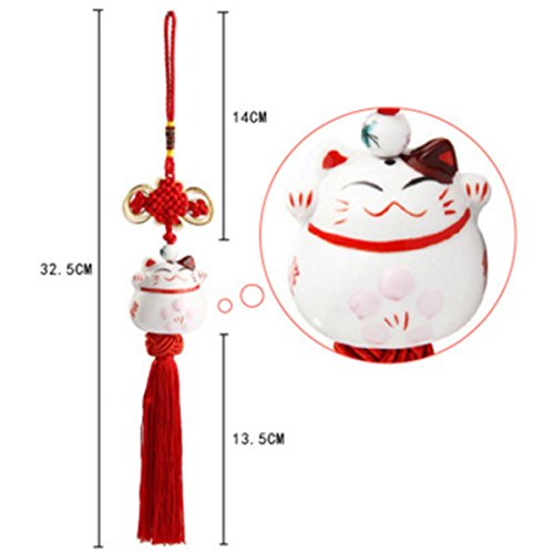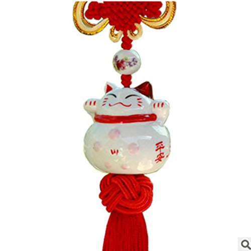 Feng Shui Lucky Cat Ceramic Pendant Charm Hanging for Wealth Fortune
