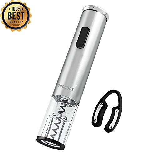 Electric Wine Opener, Doocoos Cordless Electric Wine Bottle Opener with Removable Free Foil Cutter (silver)