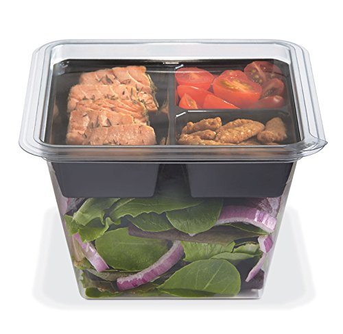 Studio : Placon Publisher : Placon Product Description Placon's Fresh 'n ClearTM Set provides you the best way to showcase fresh salads and pre-made meals. Take your clear EcoStar® recycled PET base and 3-compartment insert to highlight everything from seasonal cut fruit and candied nuts to delicious meats and cheeses. Top off the container with an over-cap, leak resistant, anti-fog lid with up to 100% recycled content. Excellent option to pack, serve or showcase fresh salads, deli food, snacks and pre-made meals. Great choice for travel food packing. These black plastic containers with compartments are an ideal solution for take out service, street food vendors, fast food restaurants, concession stands, catering, carry out service, delivery, to go venues etc. Besides, you can use this container as a convenient and compact lunch box or bento box. 0