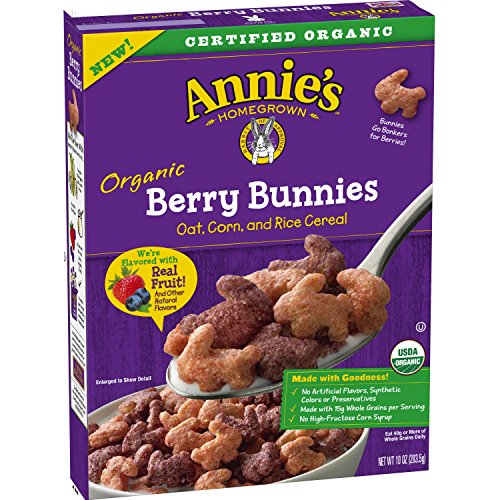 -. Feature : Made with 15g of whole grains, organic oats, corn and rice flour; A non-GMO cereal that's tasty AND wholesome / Made with goodness; No artificial flavors, synthetic colors, preservatives, or high-fructose corn syrup / Start the day with a whole grain oat cereal that's perfectly balanced and flavored with real fruit and other natural flavors / Delicious, crunchy, berry bunnies that are a sweet spot for cereal lovers big and small / 10.8 oz cereal box; Stock up your pantry with an easy and delicious breakfast option for everyone