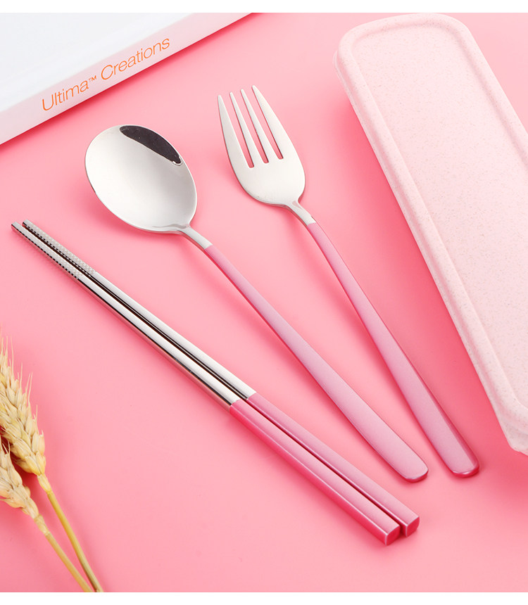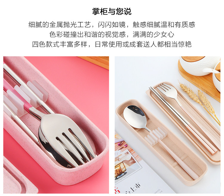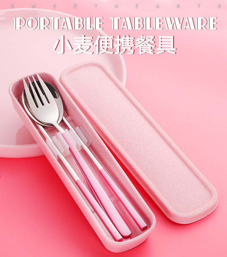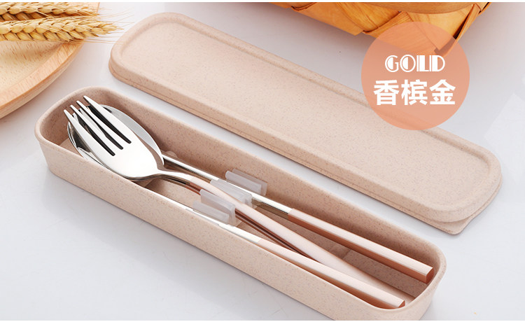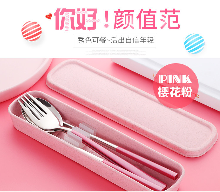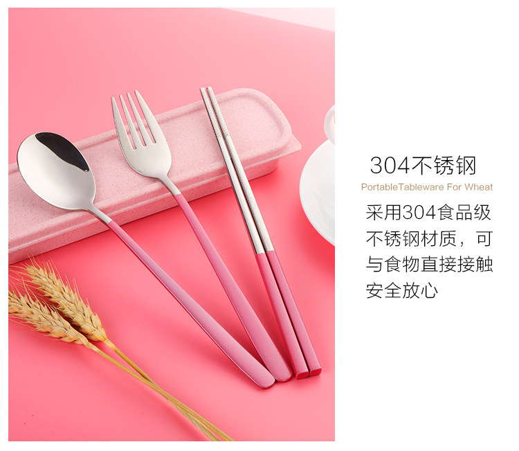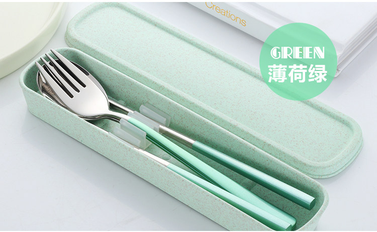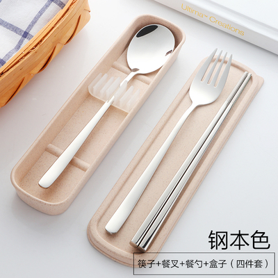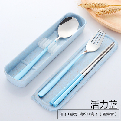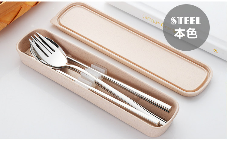 304不锈钢便携餐具筷勺套装 成人防滑筷子勺子叉子学生旅游餐具盒
