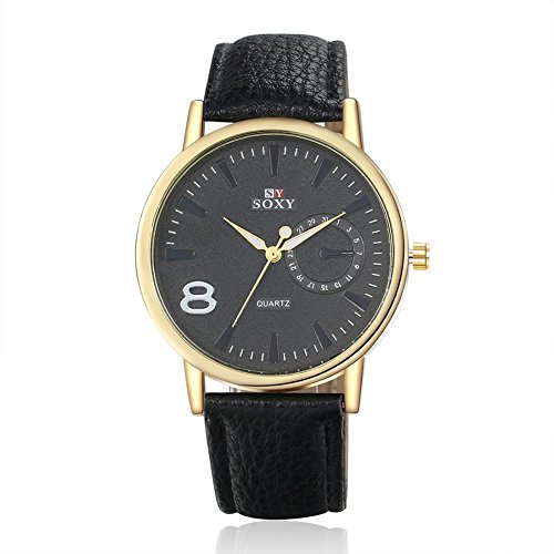 -. Title : Rockyu 鑑定 ブランド 人気 腕時計 メンズ レディース ビジネス ブラック 革バンド [並行輸入品]