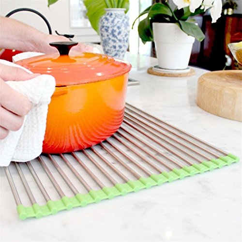 HEAT RESISTANT: The Stainless Steel Roll Up Dish Drying Rack is thermoresistant.You can run hot water over it, and even place hot pots on the rack without causing any damage!