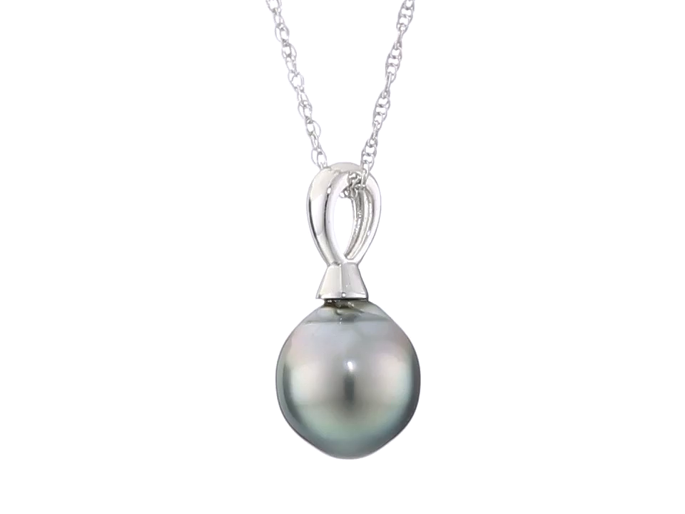 Sterling Silver Black Tahitian Cultured Pearl Pendant Necklace