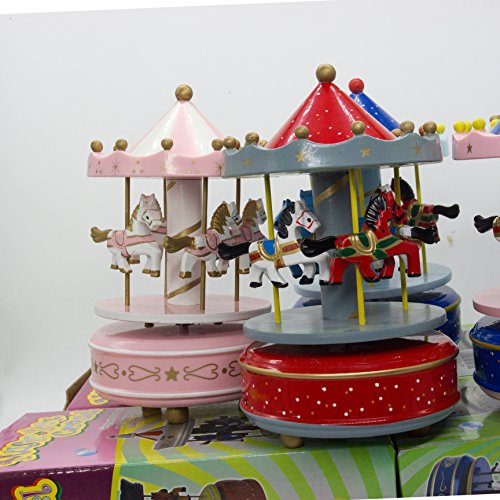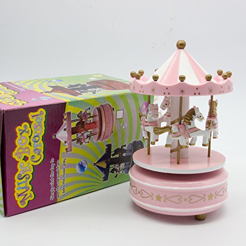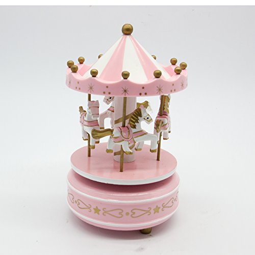 Alytimes Carousel Music Box 4 Horses Rotating Music Box Birthday Valentine's Christmas Children Gifts Toy (Pink-Love)