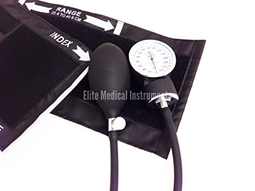 -. Feature : Manual Blood Pressure Set includes cuff, bulb, gauge, and carrying case. (Note: Stethoscope is not included) / Comes with zippered carrying case / Cuff Size: 25.4 cm to 40.6 cm / Brand: Elite Medical Instruments / Includes Manufacturers warranty