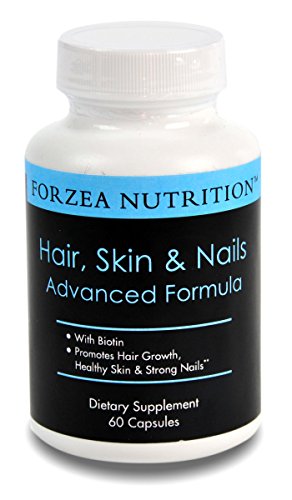 -. Binding : Health and Beauty -. Brand : Forzea Nutrition -. EAN : 0852741007059 -. Feature : Contains Biotin and more than 16 additional vitamins and minerals that have been shown in studies to support healthy hair, skin and nails / Non-Gmo, Gluten and Casein free / Made in the USA in a FDA certified facility / Satisfaction guaranteed or your money back -. IsAdultProduct : 0 -. Label : Forzea LLC -. Manufacturer : Forzea LLC -. MPN : FNHSN60C -. PackageQuantity : 1 -. PartNumber : FNHSN60C -. ProductGroup : Health and Beauty -. ProductTypeName : HEALTH_PERSONAL_CARE -. Publisher : Forzea LLC -. Studio : Forzea LLC -. Title : Forzea Hair Skin & Nails Advanced Formula with Biotin - Promotes Hair Growth, Strong Nails and Healthy Skin - 60 Count -. UPC : 852741007059