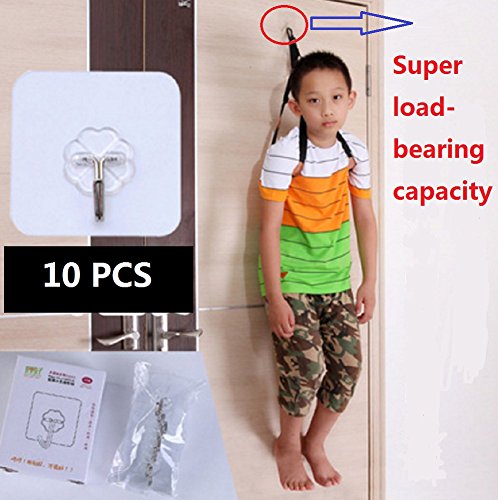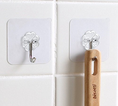 Zhiwen Self Adhesive Hooks Seamless Hooks No Scratch Adhesive Wall Hooks Nail Free Heavy Duty Transparent Hooks for Kitchen Bathroom Door Ceiling Hanger, 10 Pack