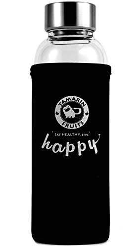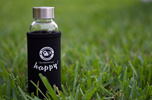 -. Title : Premium Borosilicate Glass Water Bottle with Nylon Sleeve, (12oz ) exclusive "Eat Healthy, Live Happy" design by Tamarin FruitsTM