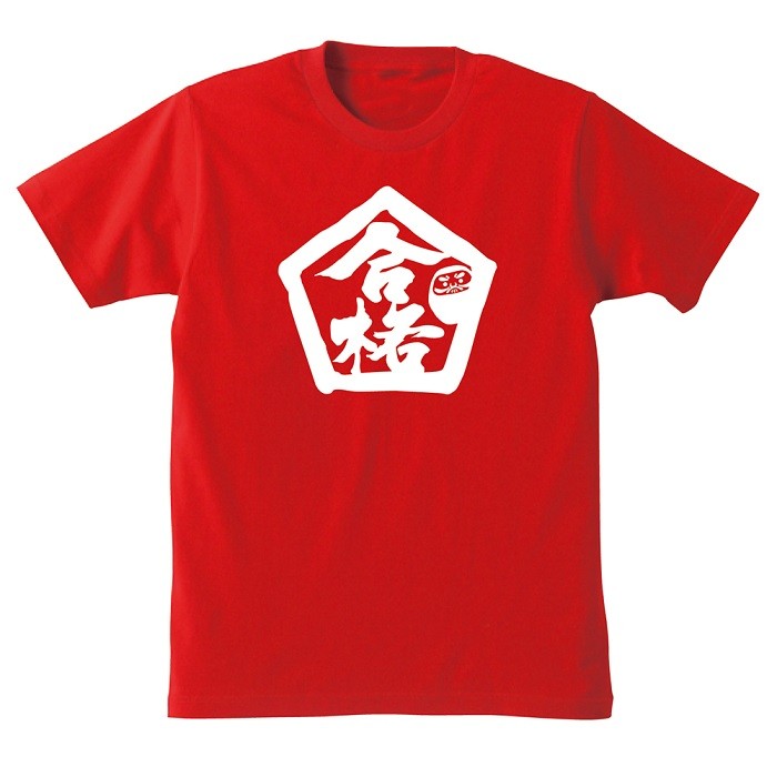 3種類から合格祈願Tシャツ選べます!【お守り祈願】縁起のいいお守り!金文字で合格祈願!シャレもんのお守りは効果絶大ですよ(笑)【五角だるま】五角形の中に合格の文字!そして横にだるまがいるのがかわいい♪赤色Tシャツで気合入りますね!【よくできる子】褒められて伸びる子なんです。やればできる子なんです。これ着てがんばろうってなります(笑)