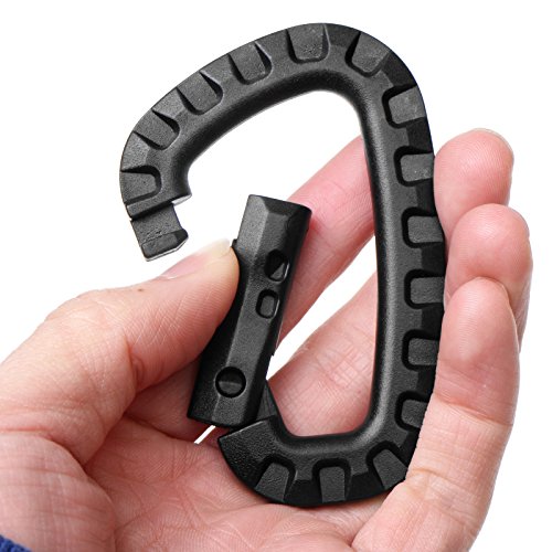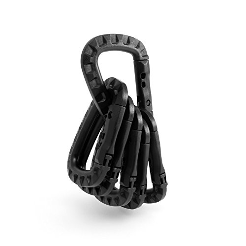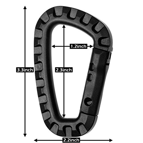 -. Feature : Package included 6 Piece of Carabiners. POM material. / Fit for lightweight application occasions(not for climbing), great for carrying items like gloves, water bottle, keys, headphone, etc / Tightly latch design for ensuring a firm bearing. / Excellent tensile strength, bending strength, wear resistance / Dimension: 3.35"x2.2''x0.37"(LxWxH)