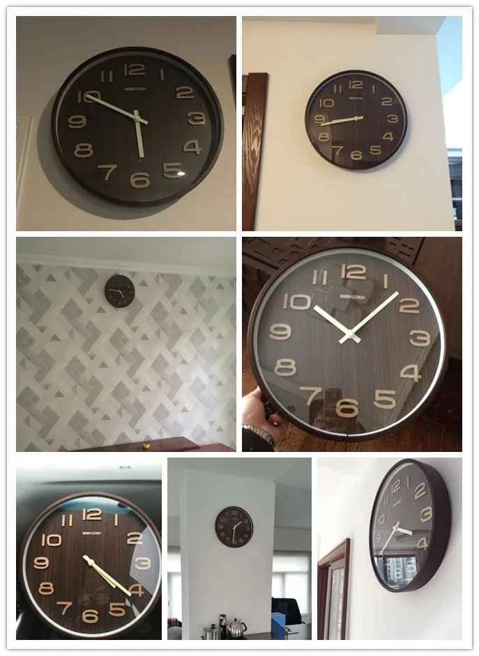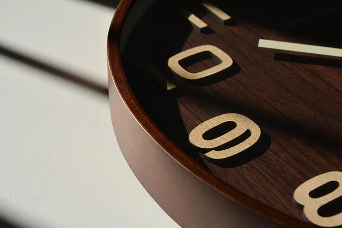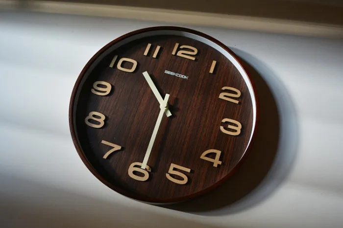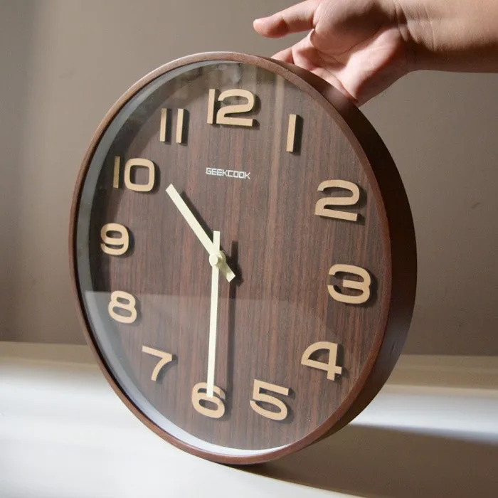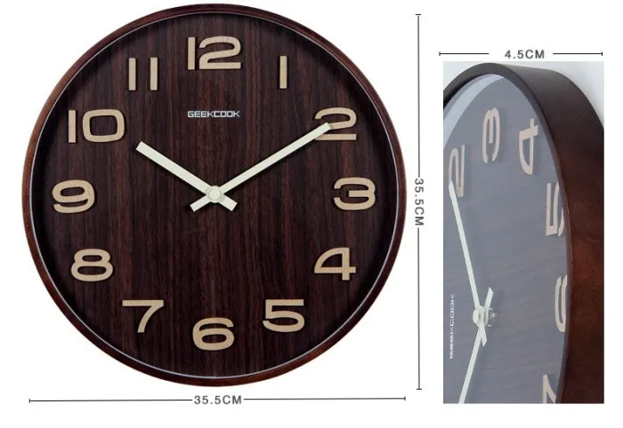 GEEKCOOK 14 inches 35CM classic tone dark brown woodwall clock mute wooden wall watches 3D numerals mur en boishorloge
