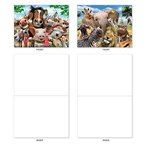 M6639OCB Here'S Looking At Zoo: 10 Assorted Blank All-Occasion Note Cards Featuring All of the Animals of the Earth Getting Together in Various Configurations to Take a Selfie, w/White Envelopes.