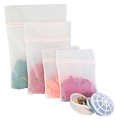 THE ULTIMATE BRA WASH BAG + 4 PREMIUM FINE MESH WASH BAGS OR LAUNDRY BAGS FOR DELICATES AND CLOTHES (BRA WASH BAG REGULAR SIZE + 2 MED + 1 LRG + 1 XL WASH BAGS)