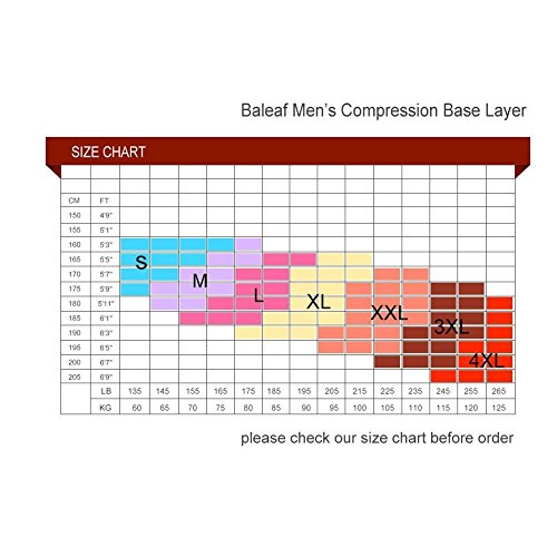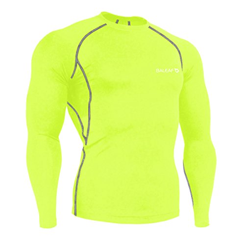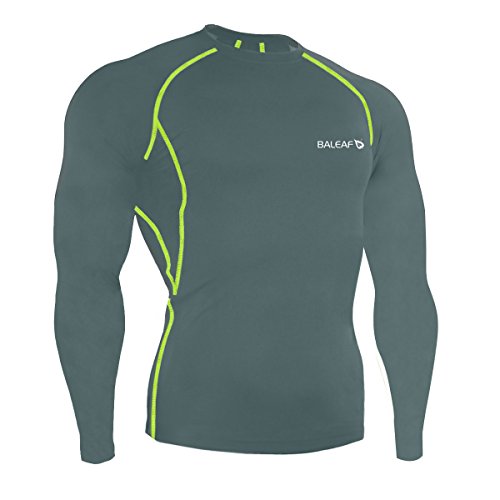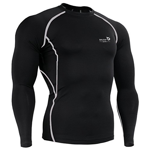 -. Binding : Apparel -. Brand : Baleaf -. Department : mens -. Feature : Lightweight and moisture-wicking fabrics keep you dry and comfortable / 4-Way stretch fabrication allows greater mobility in any direction during training / Raglan sleeve design makes you look more muscular in the shoulders / 4-Needles flat-seams minimize irritation cause by chafing / Please order ONE SIZE UP than you normally wear -. ProductGroup : Apparel -. ProductTypeName : SHIRT -. Title : Baleaf Men's Cool Dry Skin Fit Long Sleeve Compression Shirt