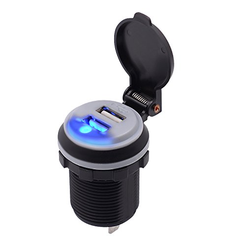-. Title : E-Bro 4.2A Dual USB Charger Socket Blue LED with Waterproof SP.R.Ing Cover Power Outlet for 12V/24V Car Boat Marine RV ATV Truck Vehicle Motorcycle Camper
