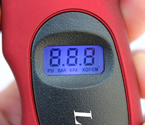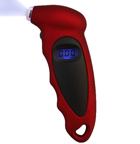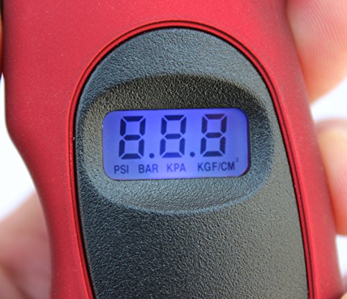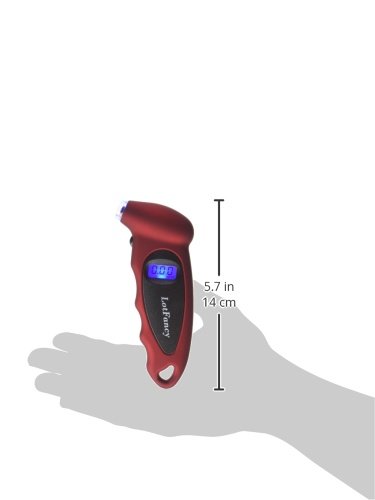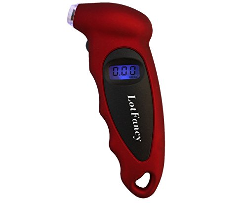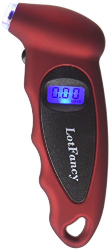 Studio : LotFancy Publisher : LotFancy Product Description This digital Tire Gauge gives you an instant, accurate and easy-to-read measurement of your vehicle's tire pressure, helping you travel safely. A simple pushbutton turns the unit on and selects one of 4 measurement ranges. The lighted nozzle illuminates work area in low light, so you can easily locate valve stem. With gentle pressure, the nozzle seals onto valve stem quickly and completely to deliver an accurate measurement. Instantly, the exact measurement is clearly displayed on the lighted digital screen, so there is no guesswork or estimation like reading an analog gauge. After you are done, a 30-second automatic shut off means you never have to worry about accidently running the batteries dead. Contoured to fit your hand, the ergonomic shape is completed by a soft, non-slip texture, for ultimate comfort and control. Features: Weight : 3.10 oz (88g) Size : 5.43 inch x 2.20 inch x 1.18 inch (13.8 x 5.6 x 3 cm) Ranges :0-100 PSI Resolution:0.5PSI/0.05BAR Power : CR2032 Operating temperature :-0-50°C FOur test modes :PSI, BAR, KPA, KGF/CM2 Bright LED flashlight and Easy-to-read LCD screen , shut-off freely the economical light setup. Pressure gauge accuracy: /-1psi (4) Measurement Ranges: PSI: 0-100, Bar: 0-7, KPA: 0-700, Kgf/cm2: 0-7 Minimum Increment: 0.5 PSI Common pressure value conversion : 1 (bar) = 1.02 (kg/cm2) = 14.5 (psi) =100kPa 1 (kg/cm2) = 0.98 (bar) = 14.2 (psi) 1 (psi) = 0.069 (bar) = 0.07 (kg/cm2) 1 (kpa) = 0.01 (bar) = 0.0102 (kg/cm2) Package include: 1x Digital Tire Pressure Gauge 0