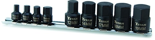 Titan Tools 16141 Low Profile Stubby Metric Hex Bit Socket Set - 9 Pieces