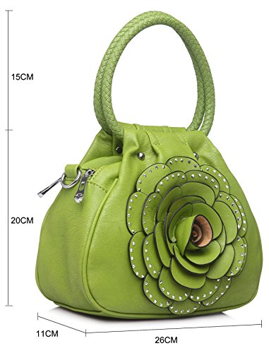 -. Feature : Full on trend grab bag with a stunning 3D flower design to the front with diamante detailing / Individual top zip opening for two compartments. Fully lined with two slip pockets and a zip pocket / Height 20 cm (8"), Top Width 15 cm (6"), Bottom Width 26 cm (10"), Depth 11 cm (4.5"), Top handle drop 15 cm (6"), Strap length 130 cm (51"), Strap Drop 32 - 63 cm (12.5"-25"), Weight 480 grams (1.05 pound) / Silver tone metal detailing / Removable adjustable lonf shoulder strap