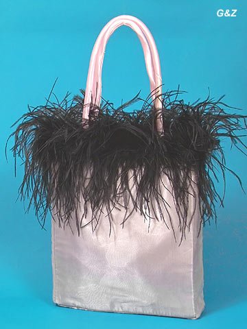 Studio : GZ International Publisher : GZ International Product Description Fashion Tote Bag with Ostrich Boa. Measures 12"W x 2 1/2"D x 14"H(22 1/2"H including handles). Unique frog button close, inner black nylon, zippered side pocket. Sheer organza covered surface. Visit our Amazon store for other available colors of tote bags and ostrich boas. 0