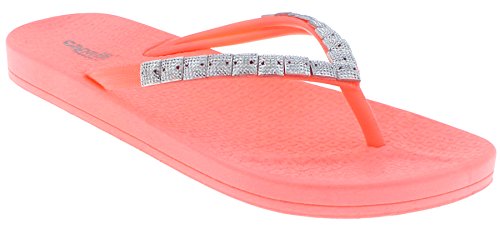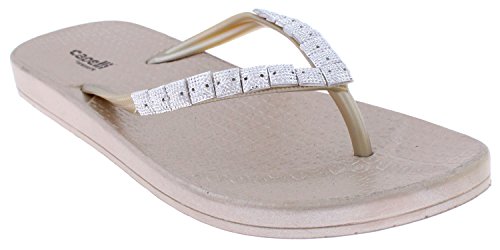 Capelli New York Opaque Jelly Thong with Caviar Gem Trim Ladies Flip Flop