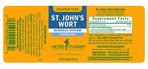 ReleaseDate : 2013-09-20 Studio : Herb Pharm Publisher : Herb Pharm Binding : Health and Beauty Product Description Herb Pharm St. John's Wort extract supports the body's natural mechanisms to promote positive mood and emotional balance.* Herb Pharm prepares St. John's Wort from fresh (never dried) flowering budding tops of Hypericum perforatum plants which are Sustainably Wildcrafted in their natural wild habitat. The plants are hand-harvested while in full flower and are then promptly extracted while still fresh succulent. Seek expert medical advice before taking St. John's Wort with medical drugs. Avoid intense exposure to sunlight or UV light while taking St. John's Wort. St. John’s Wort is bitter, slightly sour and aromatic with an astringent mouthfeel. It may be added to water or other liquid for taste and is easily absorbed into the bloodstream. Herb Pharm never uses synthetic solvents. The company's farm is Certified Organic, Bee Friendly, and Salmon Safe. Herb Pharm is the #1 selling liquid herbal extract brand in US Natural Food (SPINS). Herb Pharm is a company of herbalists, scientists, and farmers in GMO-free Josephine County, OR. There, they have been cultivating herbs with care, precision, and respect for nature since 1979. 0