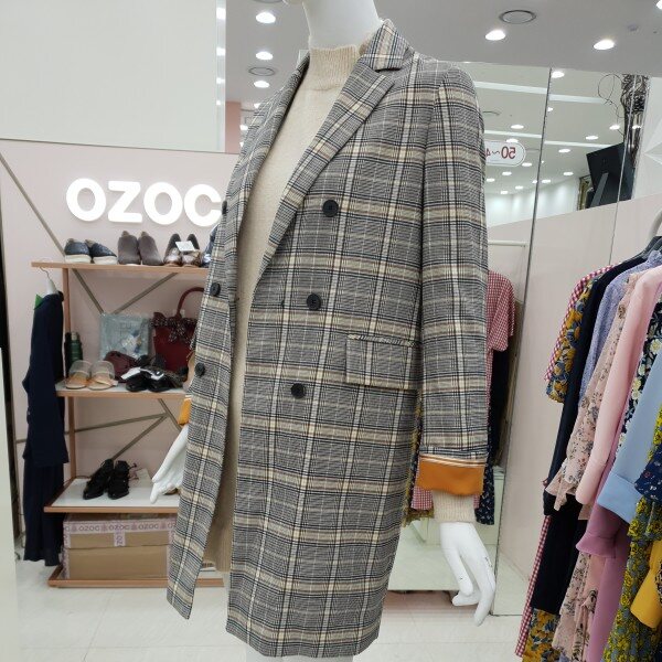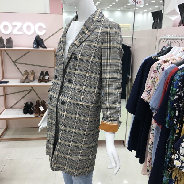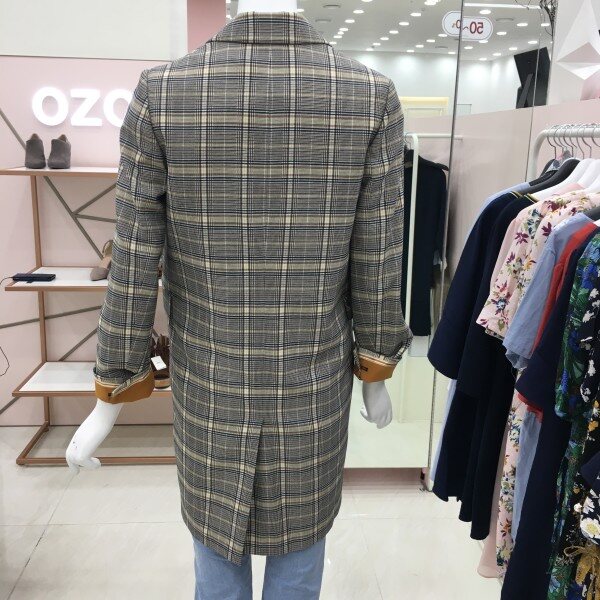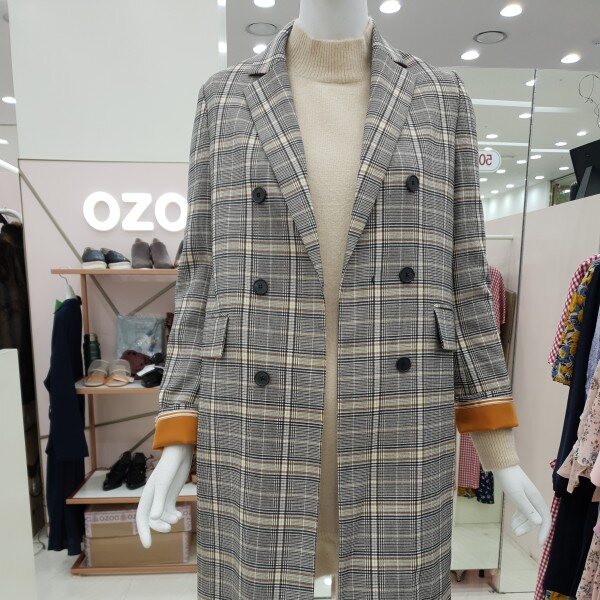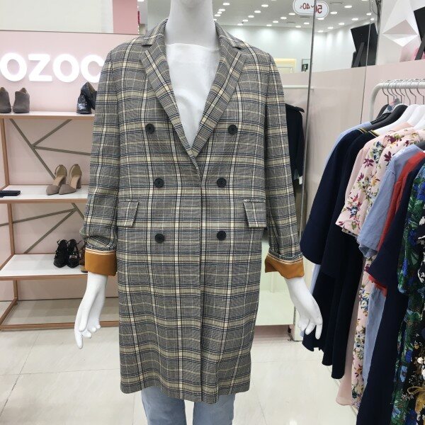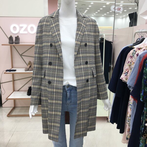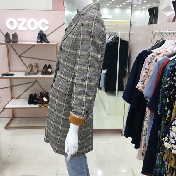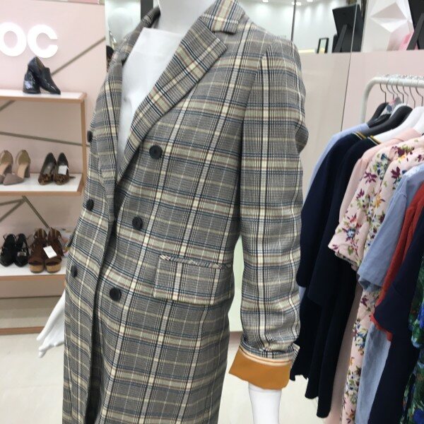 브라운 계열의 톤온톤 체크 롱 자켓을 소개해드려요. 데님이나 플레어 스커트를 같이 매치하시기 좋습니다.