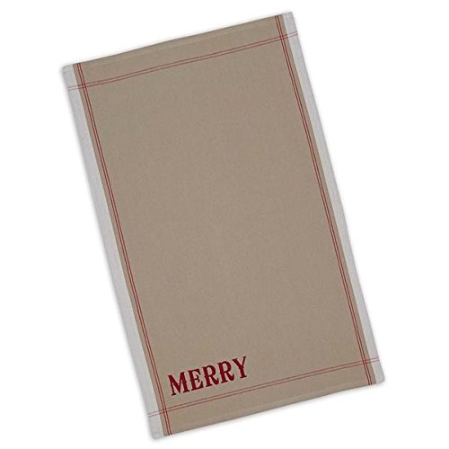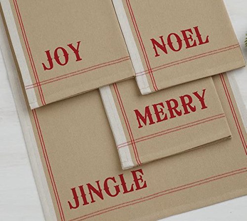 DII Design Imports Holiday Printed Kitchen Towels - Set of 4 - Jingle - Merry - Noel - Joy - Natural Red