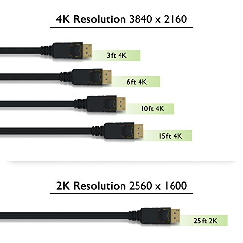 GearIT Gold Plated DisplayPort to DisplayPort Cable 10 Feet - 4K Resolution Ready (DP to DP Cable) Black