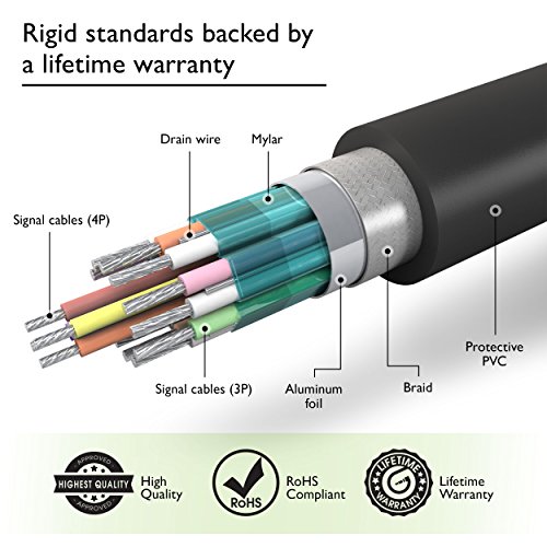 28 AWG bare braided copper conductors for reliable signal from source to display device with foil shielding for reliable uninterrupted performance.