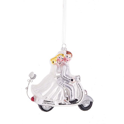 Bride & Groom on Scooter 7 x 5.5 Inch Blown Glass Christmas Ornament