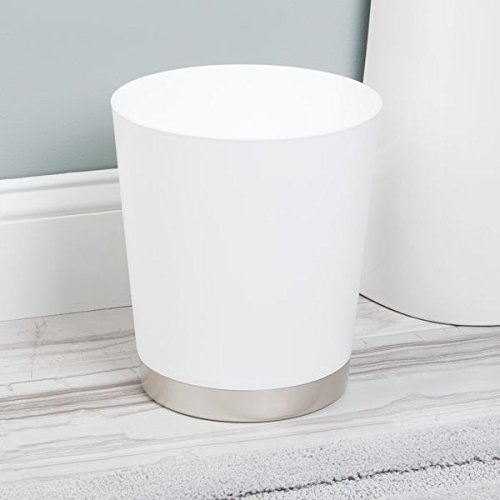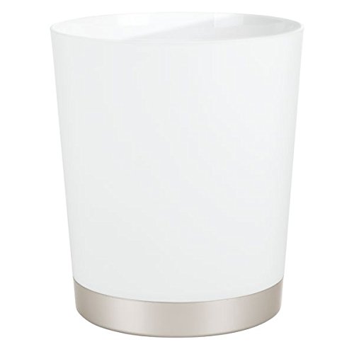 mDesign Decorative Round Shatter-Resistant Plastic Small Trash Can Wastebasket, Garbage Container Bin for Bathrooms, Powder Rooms, Kitchens, Home Offices - Satin White Body and Nickel Base