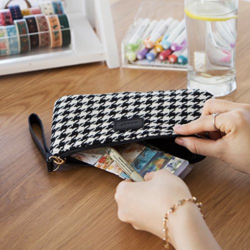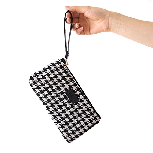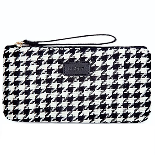 Lucky Cion Zipper Pen/Cion/Phone Clutch Purse Handbags Wallet(8"×4")-Black Grid DTB6233