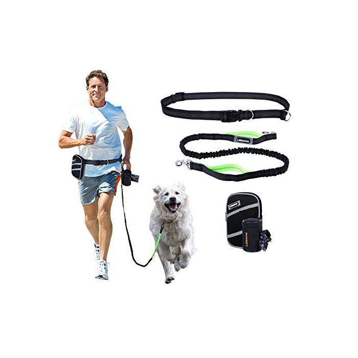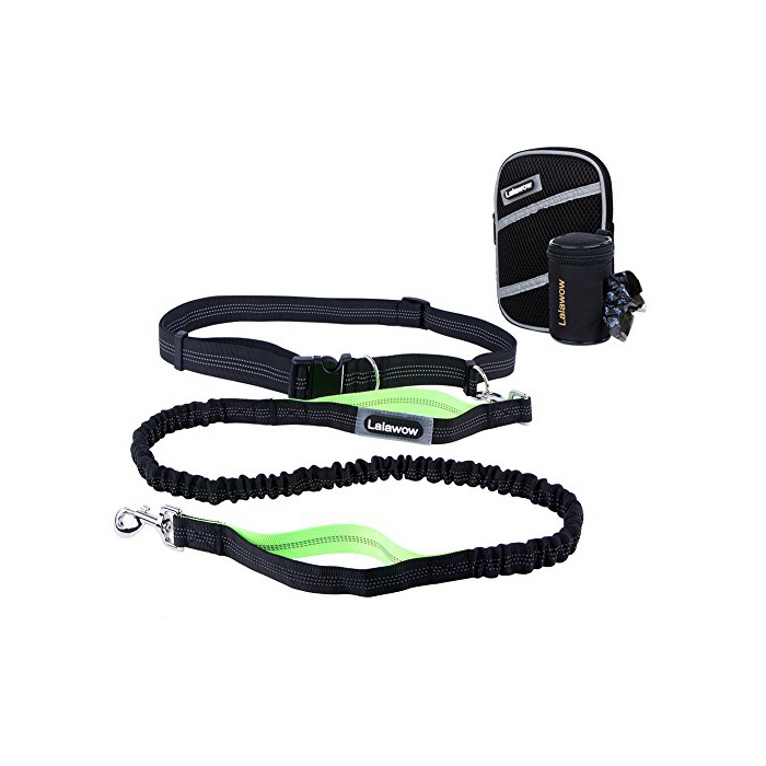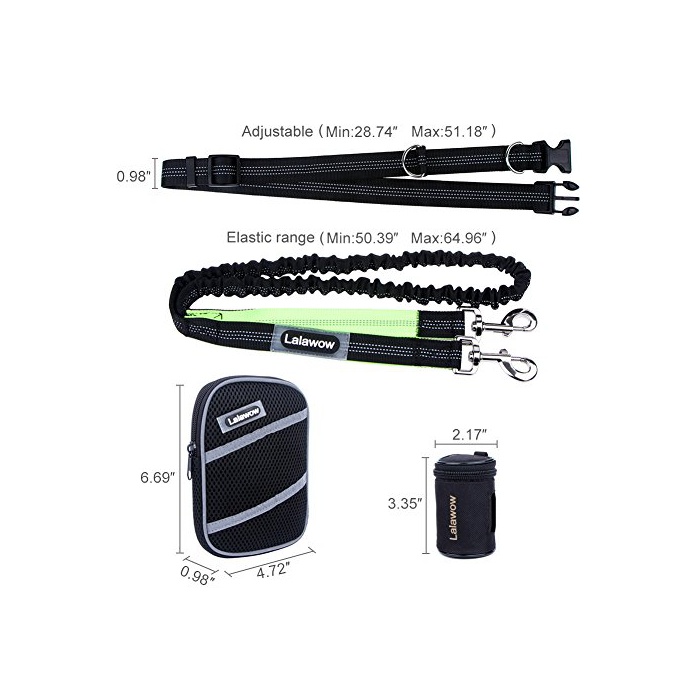 Lalawow 개 리드 신축 리이슈 핸드프리 야광 효과 웨스트 벨트 산책대 용량 웨스트 백+쓰레기 케이스+쓰레기봉지15 매부착