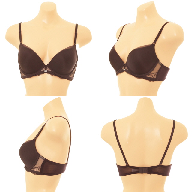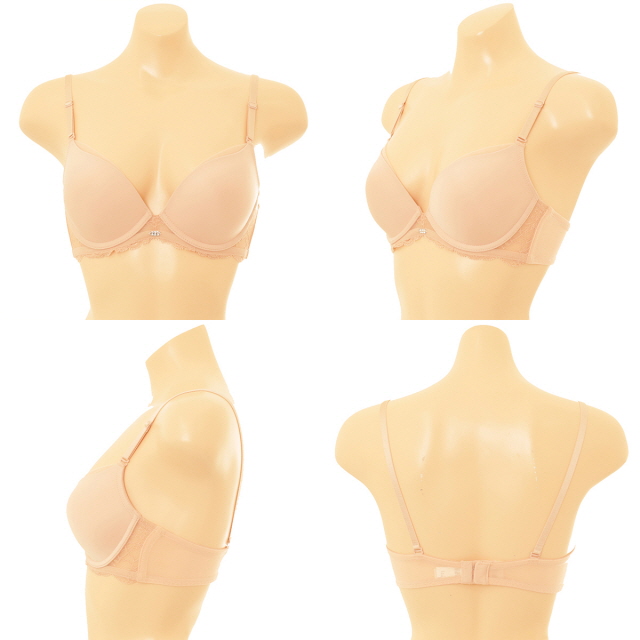 컵은 원단 몰드로 심플하게, 앞판은 섬세한 자가드 레이스로