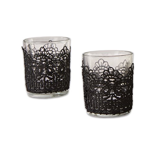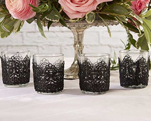 - Set of 4 clear glass votive holders wrapped with a beautiful and modern black lace