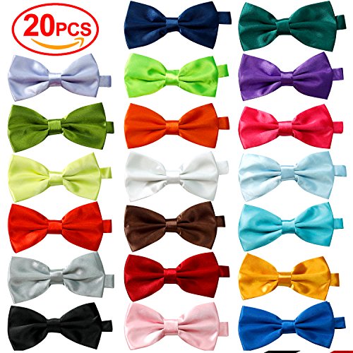 Product Description20 Pcs Elegant Pre-tied Bow ties Formal Tuxedo Bowtie Set with Adjustable Neck Band ,Gift Idea For Men And Boys0