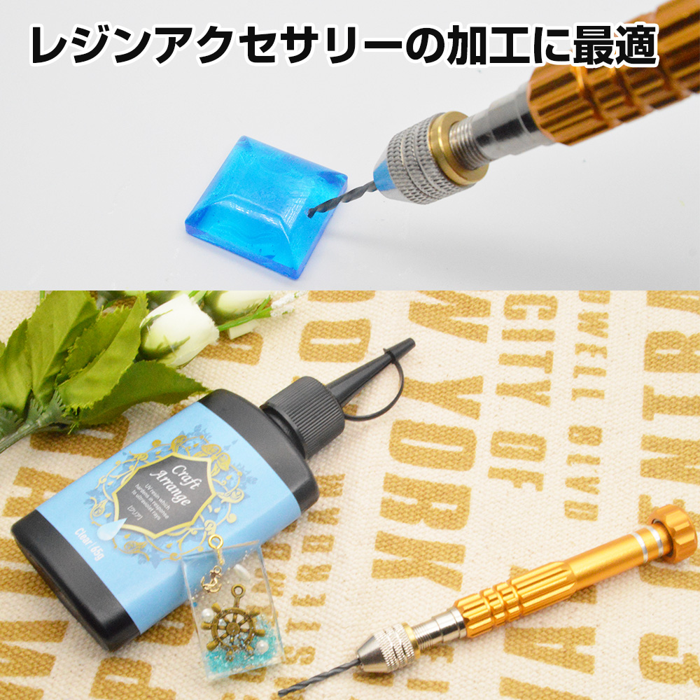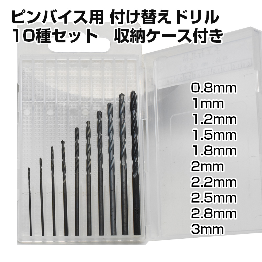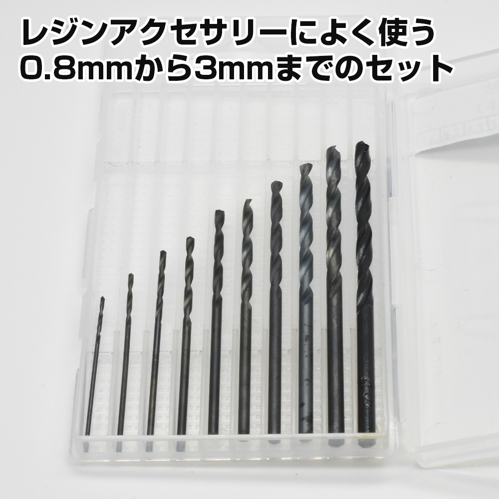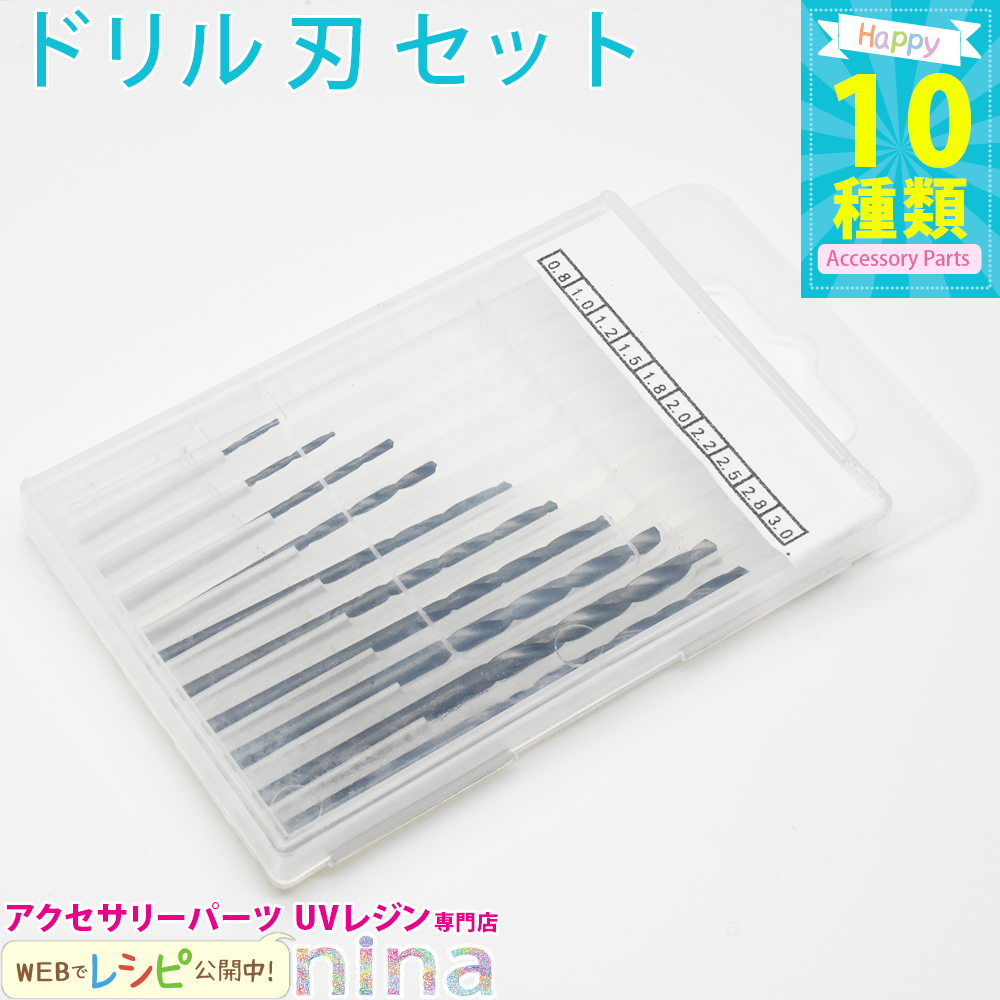■商品説明:アクセサリー作りに必須のピンバイス用付け替えドリル 10種類セットになります。レジン(透明樹脂)で作った作品に穴をあけたり、基盤製作やプラモデル、ビーズ細工などのクラフト作業などでも使えます。