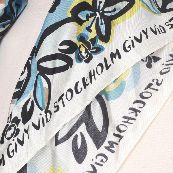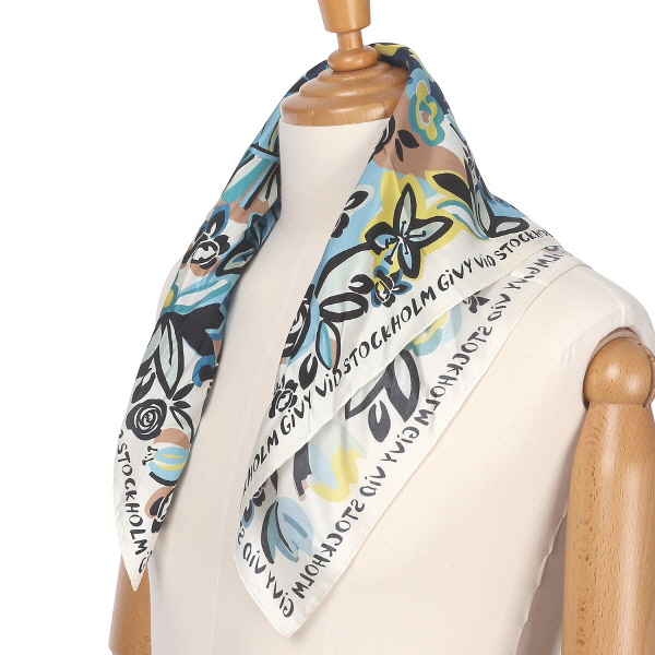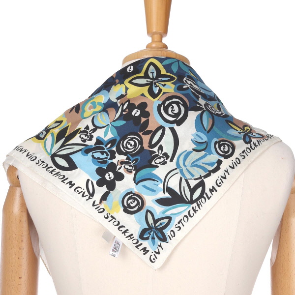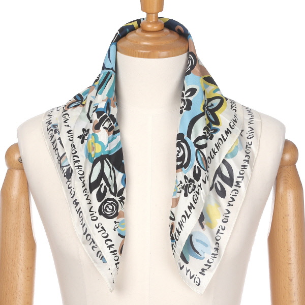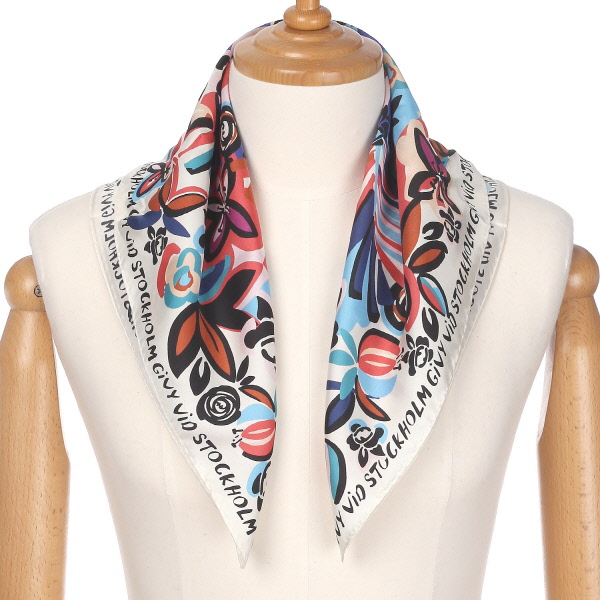 컬러풀한 플라워 프린트와 레터링이 포인트인 쁘띠 스카프입니다.