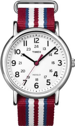 -. Title : Timex Unisex T2N746 Weekender Slip Thru Red, White & Blue Stripe Nylon Strap Watch