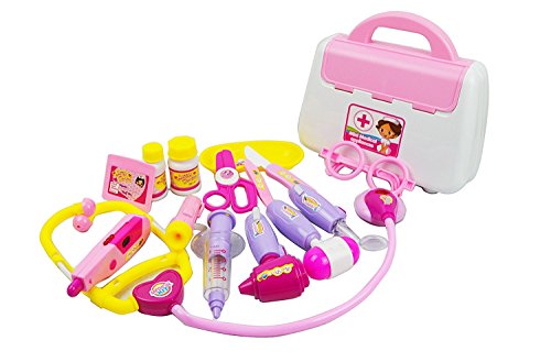 -. Title : Deluxe Puzzle Simulation Medicine Box Doctor Toys Set Kids Pretend Play Doctor Set Doctor Nurse Medical Kit Playset for Kids Child Care Box Doctor Tools Toys Pink