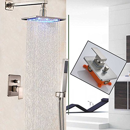 Votamuta 8-Inch LED Light Rainfall Shower Head Faucet Set Wall Mounted Bathroom Single Mixer Valve Shower Tap with Hand Sprayer,Stainless Steel