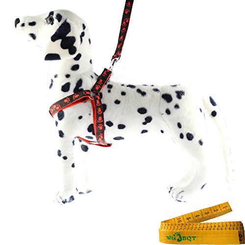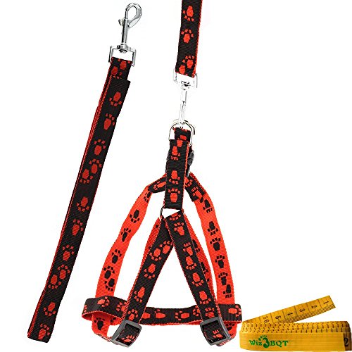 Black and Red Adjustable Breakaway Dog Cat Pet Harness and Leash Set with Footprint for Dogs Cats Pets in Spring Summer Autumn
