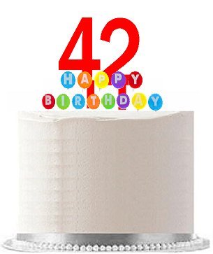 Item#042WCD - Happy 42nd Birthday Party Red Cake Topper & Rainbow Candle Stand Elegant Cake Decoration Topper Kit