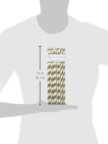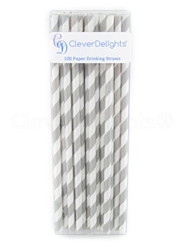 CleverDelights Biodegradable Paper Straws - Gray Stripe - Box of 100